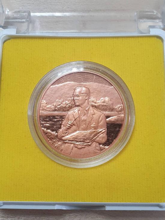 เหรียญทองแดงขัดเงา รัชกาลที่ 9 ทรงงาน ปี พ.ศ.2542 พร้อมกล่องเดิม ตรงวาระ |