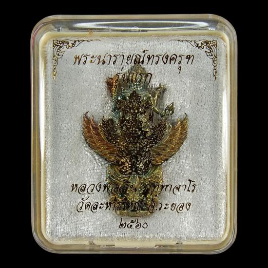 พระนารายณ์ทรงครุฑ รุ่นแรก หลวงพ่อสิน วัดละหารใหญ่ เนื้อทองแดงผิวรุ้ง หมายเลข ๙๐๘ พร้อมกล่องเดิม |