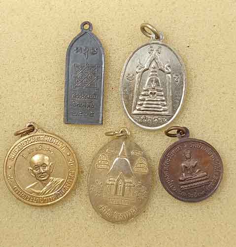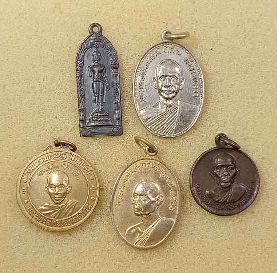 เหรียญสุวรรณภูมิวิทยาลัย ปี05+ เหรียญหลวงพ่อไสว วัดยานาวาปี14+เหรียญสมเด็จพระมหาสมณเจ้า กรมพระยาปวเรศวริยาลงกรณ์ วัดบวรฯปี14+ เหรียญพระเทพเจติยาจารย์ วัดเสน่หา นครปฐม ปี16 +เหรียญหลวงพ่อเติมอยุธยาปี19 |