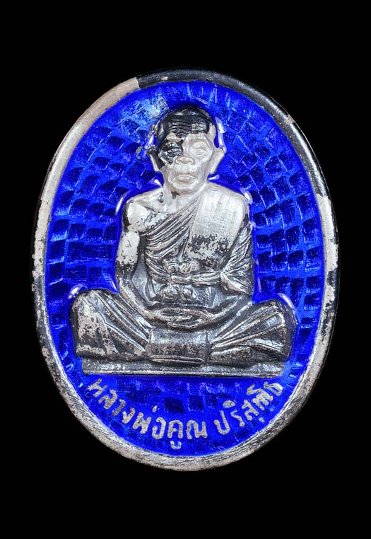 เหรียญหลังหมู ขอบารมีท่านคุ้มครอง ( เนื้อเงิน ลงยาน้ำเงิน ) พ.ศ.2538 ( ยากระเทาะนิดหน่อย )