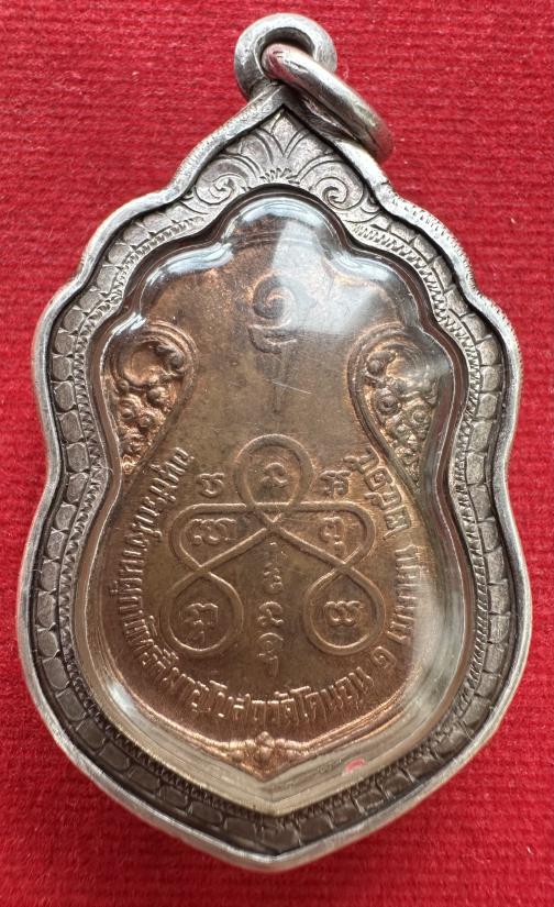 เหรียญ หลวงปู่เอี่ยม วัดโคนอน ปี 2515 เนื้อทองแดง หลังยันต์ห้า เลี่ยมกรอบเงินลงยา
