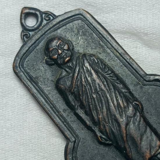 เหรียญหลวงพ่อขอม วัดไผ่โรงวัว จ.สุพรรณบุรี รุ่นเสาร์ 5 พิมพ์ใหญ่ เนื้อทองแดงรมดำ สร้างปี 2505 |