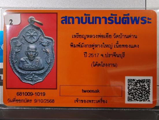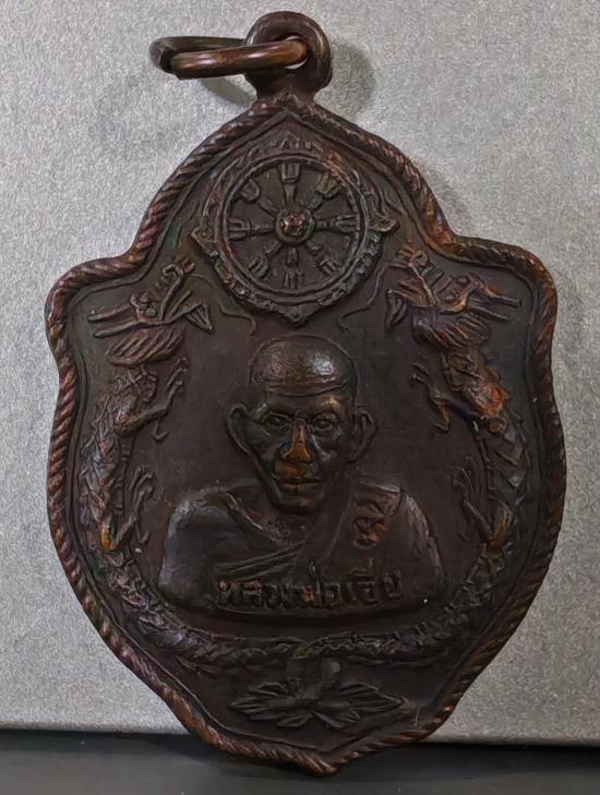 เหรียญหลวงพ่อเอียวัดบ้านด่านพิมพ์มังกรคู่หางใหญ่ปี2517ปราจีนเนื้อทองแดง
