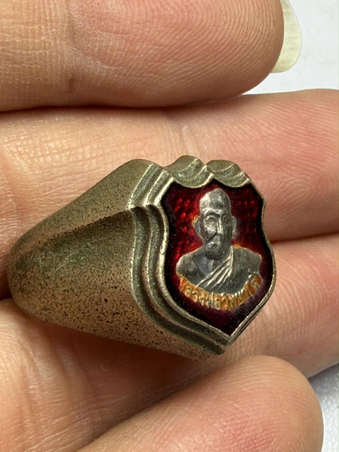 50.-/// แหวนหลวงปู่ตี๋ วัดท่ามะกรูด สุพรรณ ปี 51 หน้าเงินลงยา |