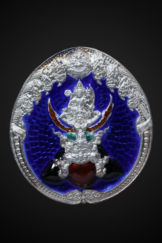 เหรียญนารายณ์ทรงครุฑประทับราหู ท่านเจ้าคุณธงชัย วัดไตรมิตร ปี 48 เนื้อเงินลงยา พิมพ์ใหญ่ |