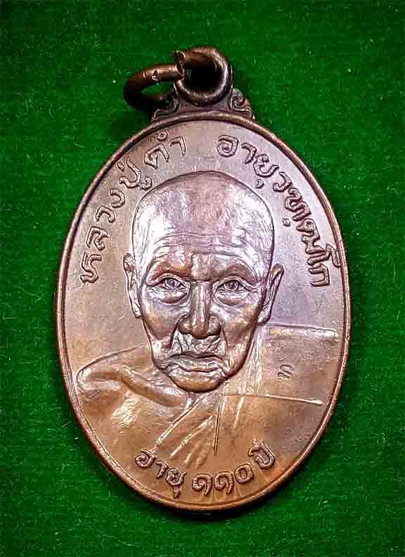 เหรียญหลวงปู่ดำ อายุวฑฺฒโก อายุ 110 ปี วัดคำแก้ว จ.ยโสธร ปี 2521 |
