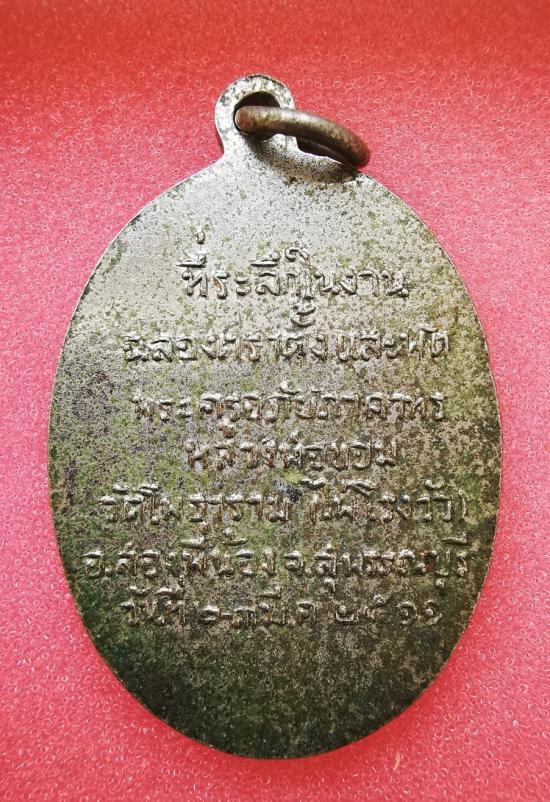 เหรียญฉลองพัดยศหลวงพ่อขอม วัดไผ่โรงวัว จ.สุพรรณบุรี ปี 2511 สร้างเป็นที่ระลึกในงานฉลองตราตั้งและพัดยศครับ
