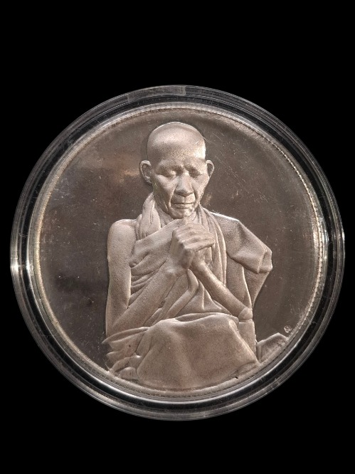 เหรียญบาตรน้ำมนต์หลวงพ่อเกษม เขมโก รุ่นบาตรทิพย์ เนื้อทองแดง กะไหล่เงิน ขนาด 5 ซม. ปี 2538 ตอก นะ |
