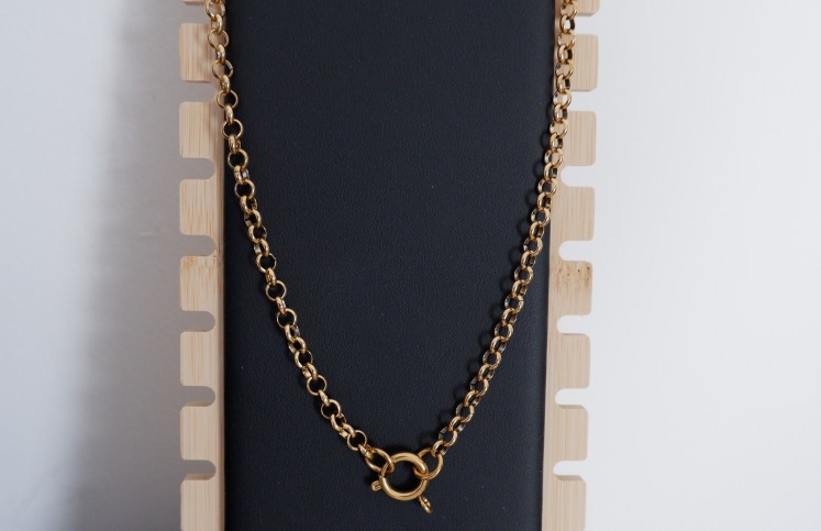 สร้อยสแตนเลสงานเลเซอร์ทอง ลายผ่าหวาย ยาว 26 นื้ว พร้อมห่วงสปริงรังดุมสแตนเลสงานเลเซอร์ทอง |