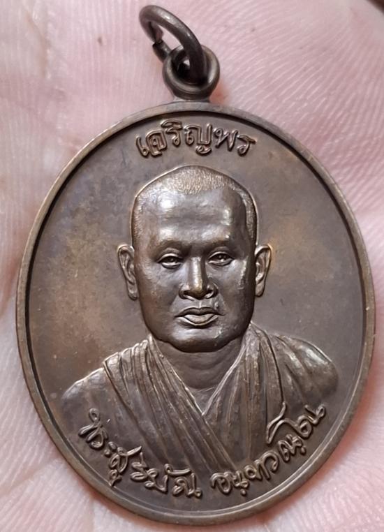 เหรียญเจริญพรบน พระอาจารย์สุริยันต์ วัดป่าฉัพพรรณรังสี จ.ชัยภูมิ เนื้อทองแดง |