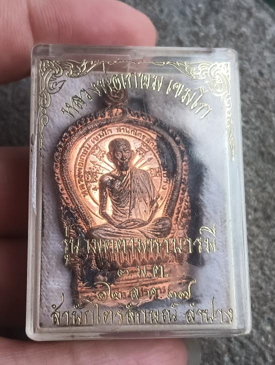 เหรียญนั่งพาน #เนื้อทองแดงผิวไฟ หลวงพ่อเกษม เขมโก ปี2537 เมตตา มีสตางค์ ไม่ตาย พร้อมกล่องเดิม พระสวยเดิม ผิวไฟเดิมๆ ตัวจริงแดงๆ ไม่ผ่านการใช้งาน