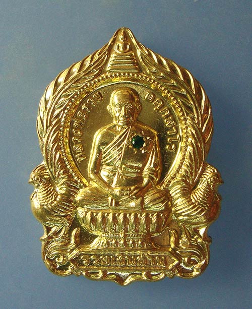 เหรียญนั่งพานมหามงคลรวยเงินล้าน เนื้อทองทิพย์ฝังพลอยมรกต หลวงพ่อรวย วัดมาบตาพุด จ.ระยองครับ |