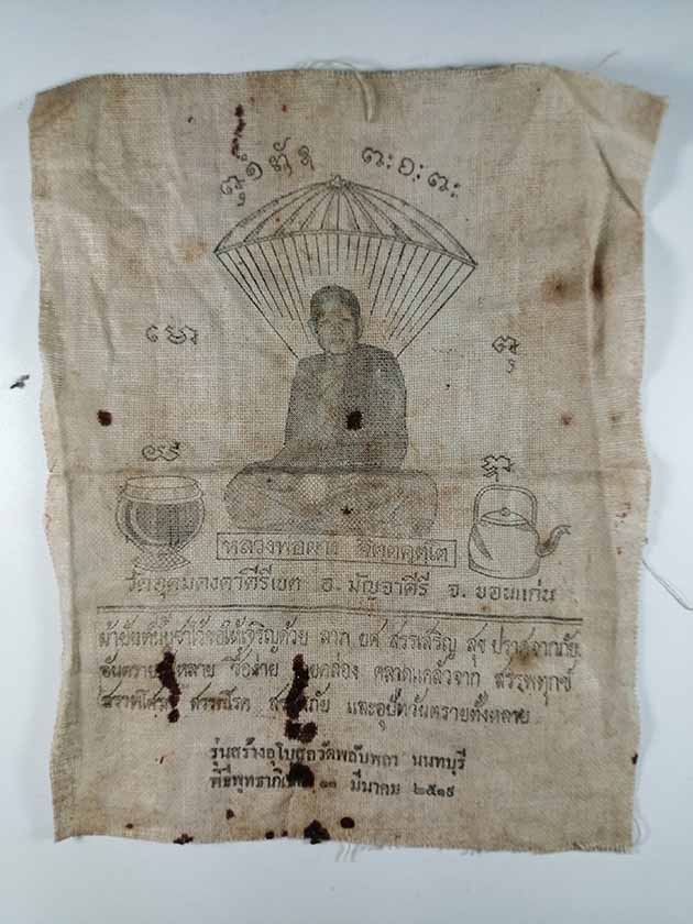 ผ้ายันต์ หลวงพ่อผาง ในงานพุทธาภิเษก วัดพลับพลา นนทบุรี ปี 2519