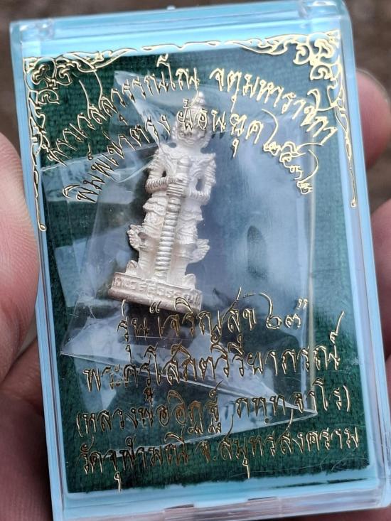 ท้าวเวสสุวรรณโณ รุ่นเจริญสุข 63 พิมพ์เข่าย่อ ย้อนยุค ปี32 หลวงพ่ออิฏฐ์ วัดจุฬามณี เนื้อเงิน กล่องครบครับ |