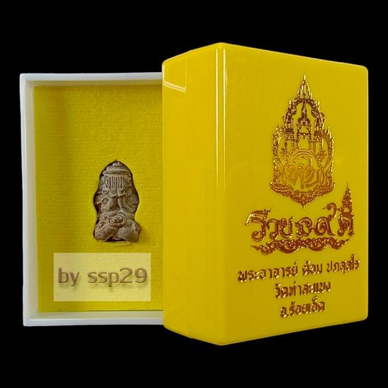 พระปิดตายันต์ยุ่ง เนื้อชนวนสัมฤทธิ์โบราณ พระอาจารย์ต้อม วัดท่าสะแบง ร้อยเอ็ด หมายเลข ๒๐๘๐ พร้อมกล่องเดิม แจกในพิธีรวยนะ ๙ ดี ถวายงาน โดย ป๋าต้อย เมืองนนท์ |