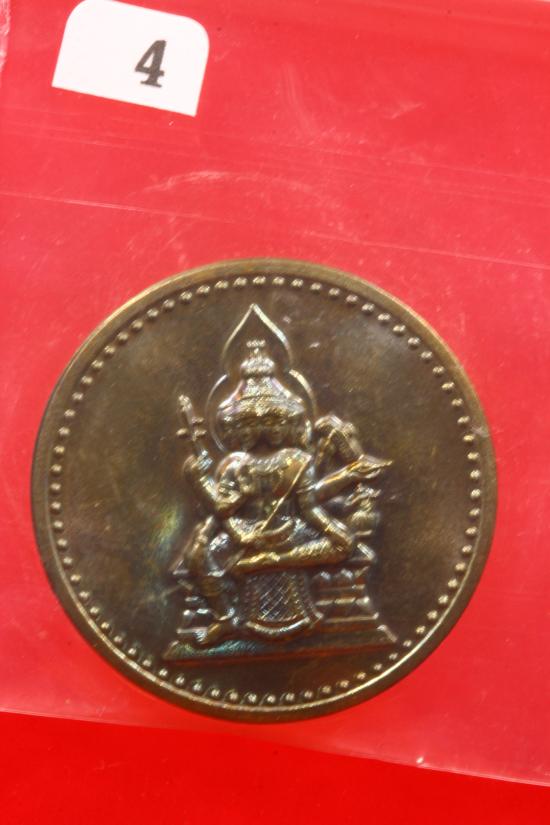 เหรียญพระพรหม สี่หน้า หลวงพ่อชำนาญ วัดชินวราราม โภคทรัพย์หลังขวัญถุง เนื้อสำริด ปี 2563 |