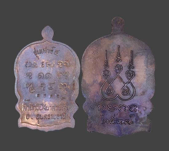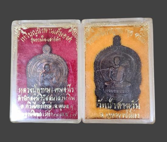 เหรียญนั่งพาน หลวงพ่อพุธ หลวงปู่พรหมมา เนื้อทองแดงปี 2537 อย่างละ เหรียญ |