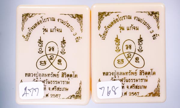 งานหล่อ ประกบ3 ชิ้น ข้างในมีผงงาช้างบด มวลสาร เขย่าดูมีมวลสาร สวยๆ หลวงปู่มหาศิลาร่วมเศก แบ่งเบาๆ ออฟชั่นเนื้อจะมีหลายๆ เนื้อหรือลงยาร่วมด้วย