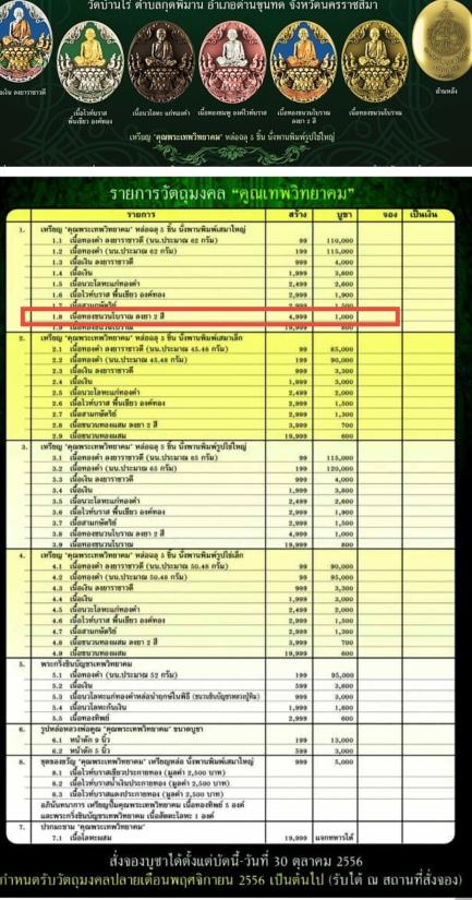 หลวงพ่อคูณ วัดบ้านไร่ นั่งพานพิมพ์เสมาใหญ่ หล่อฉะลุ5ชิ้น ปี2556 เนื้อทองชนวนลงยา2สี กล่องเดิมๆ |