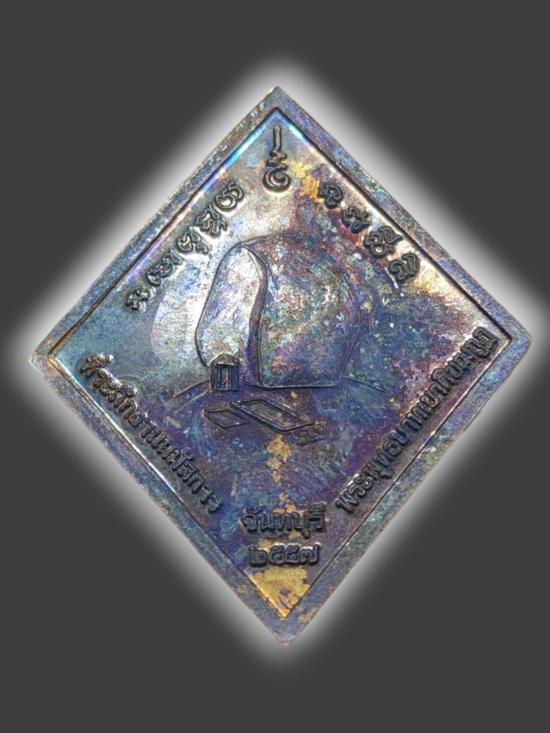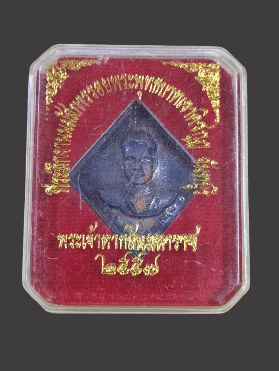 A1750.เหรียญพระเจ้าตากสินมหาราช ที่ระลึกงานนมัสการรอยพระพุทธบาทเขาคิชกูฏ จันทบุรี ตอกโค๊ต กล่องเดิม เคาะเดียวเเดง |