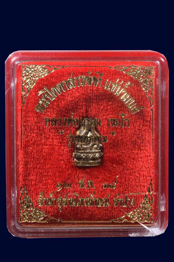 พระปิดตาสารพัดดี แช่น้ำมนต์ รุ่นพุทธคุณ เนื้อเงิน หลวงพ่อเกษม เขมโก ปี 2538 พร้อมกล่องเดิม |