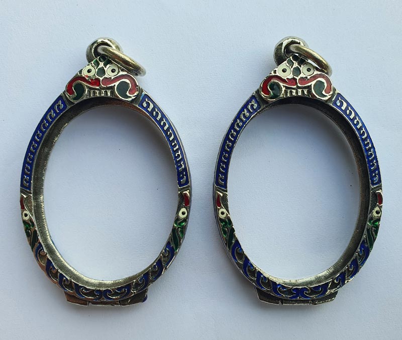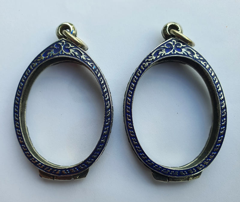 ตลับเงินรูปไข่ยกซุ้มลงยาอย่างดี ยกคู่ 2 ใบ สภาพดีเหมือนใหม่ ใส่เหรียญขนาด 2.7x3.5 ซม. |