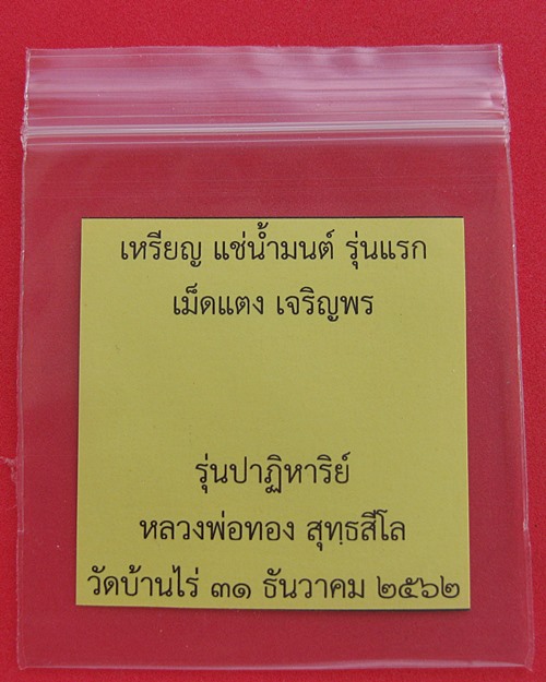 วัดใจ.. "เม็ดแตง เจริญพร รุ่นแรก" / หลวงพ่อทอง วัดบ้านไร่ / เนื้อทองระฆัง ปีกจำโบ้ / โค้ด กรรมการ ครุฑ รอบ / เลขสวยๆ เบอร์ 4 |