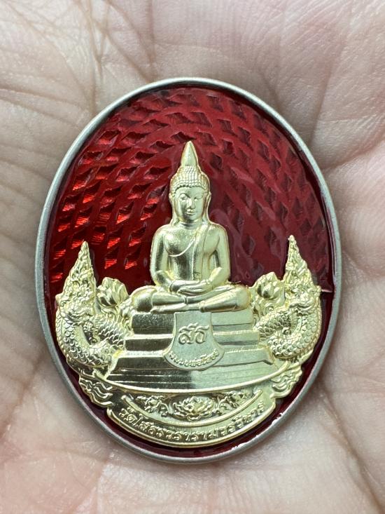 เหรียญหลวงพ่อโสธร รุ่นประวัติศาสตร์ ครบรอบ 255 ปี หมายเลข 6 เนื้ออัลปาก้าซาตินลงยาสีแดงหน้ากากชุบทอง