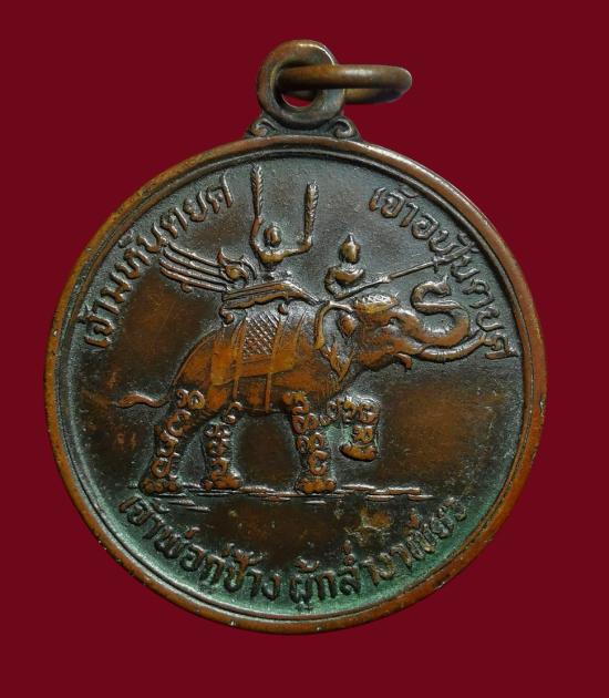100-.เหรียญเจ้าพ่อกู่ช้าง รุ่นแรก อ.เมือง จ.ลำพูน ปีพ.ศ.2521 เนื้อทองแดงรมดำ.....บล็อคนิยม หางแตก...