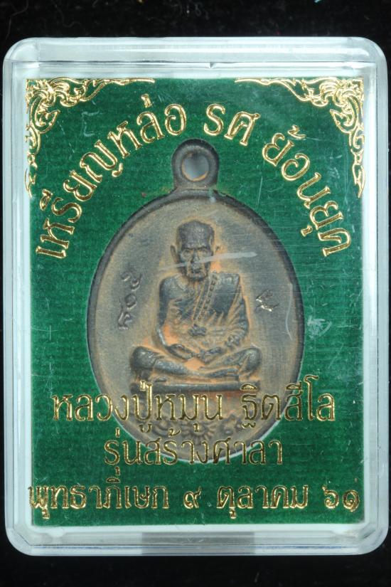 ** เนื้อเหล็กน้ำพี้(ทนสิทธิ์) ** เสกใหญ่ 2 วาระ เสกวัดบ้านจาน+วัดระฆังโฆษิตาราม เหรียญหล่อ รศ. ย้อนยุค รุ่นสร้างศาลา ปี 2561 หลวงปู่หมุน หมายเลข 805 พร้อมกล่อง |