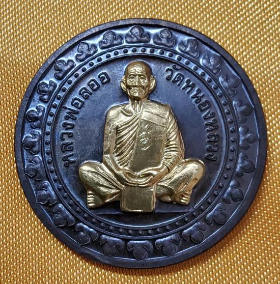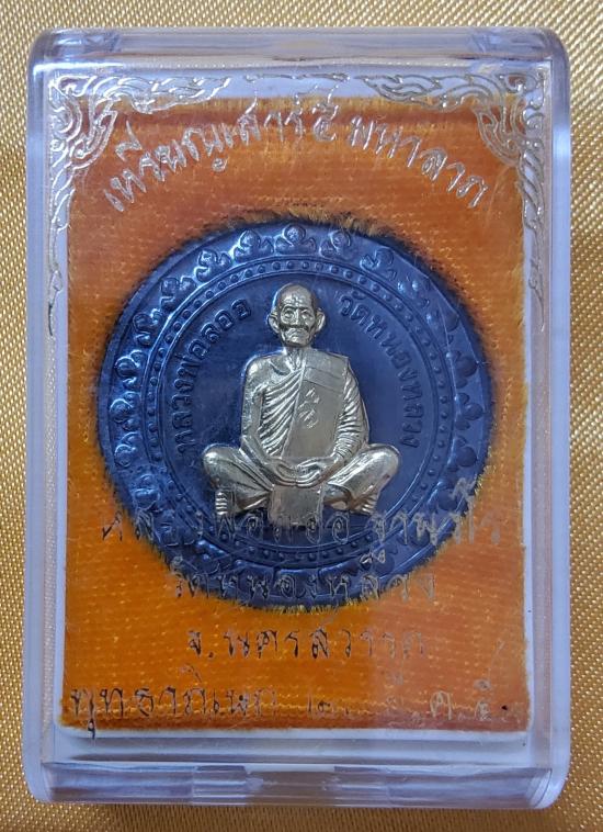 หลวงพ่อลออ วัดหนองหลวง เหรียญเสาร์ ๕ มหาลาภ ปี 2553 เนื้อนวะหน้ากากทองคำ มีจาร กล่องเดิม