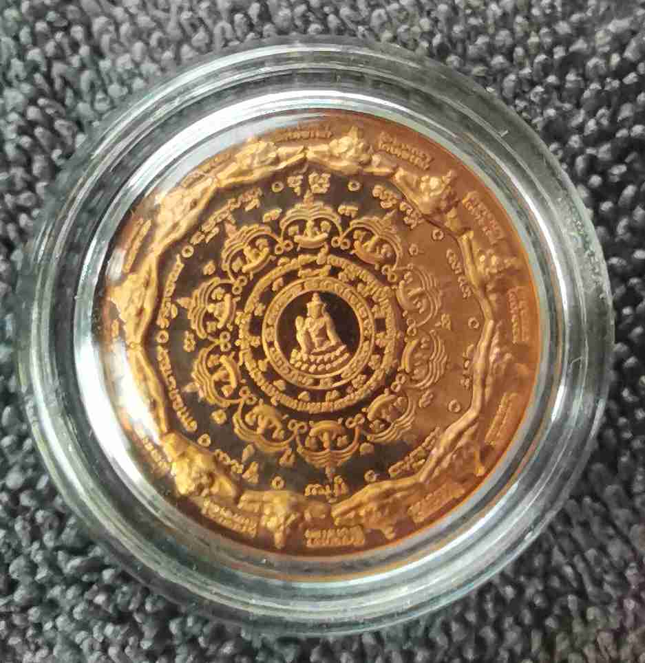 เหรียญฉลองพระเกียรติ 3 ซม ทองแดงขัดเงาพร้อมตลับเดิม