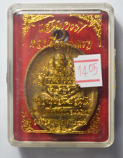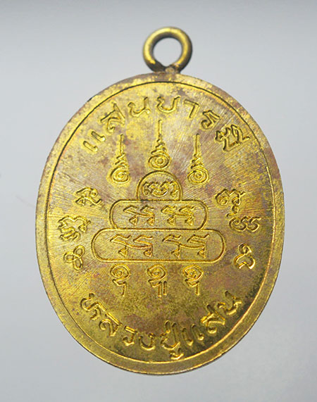 เหรียญหล่อ หลวงปู่แสน วัดบ้านหนองจิก ห่วงเชื่อ รุ่นแรก เนื้อทองระฆัง หลังยันต์ โค๊ด เลข 1405 เหรียญสูง 3.5 เซน |