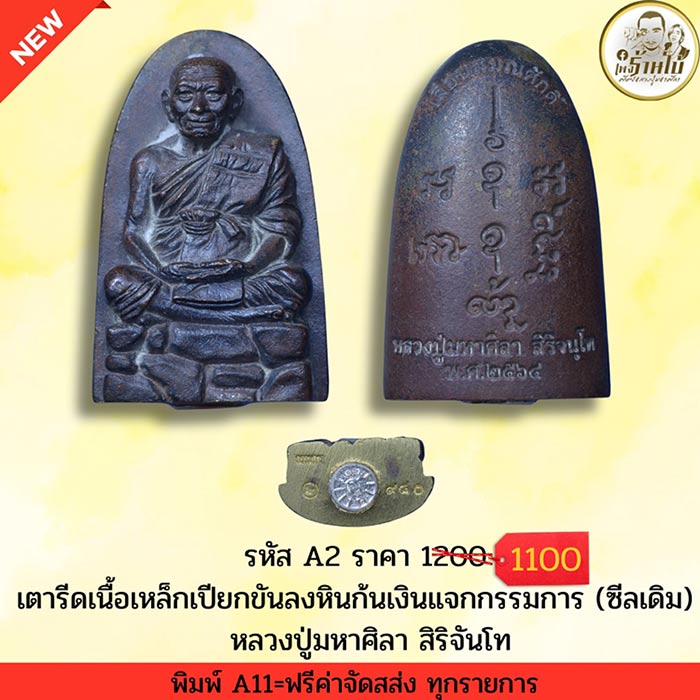 พระรูปเหมือนเตารีด หลวงปู่มหาศิลา สิริจันโท จ.กาฬสินธุ์ 2564 เนื้อเหล็กเปียกขันลงหินก้นอุดเงิน แจกกรรมการ |