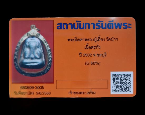 "วัดใจ" พระปิดตาหลวงปู่เฮี้ยง วัดป่า จ.ชลบุรี เนื้อชินตะกั่ว ปี 2502 พร้อมบัตร พระสภาพสวยแชมป์ หายากน่าใช้มากๆ