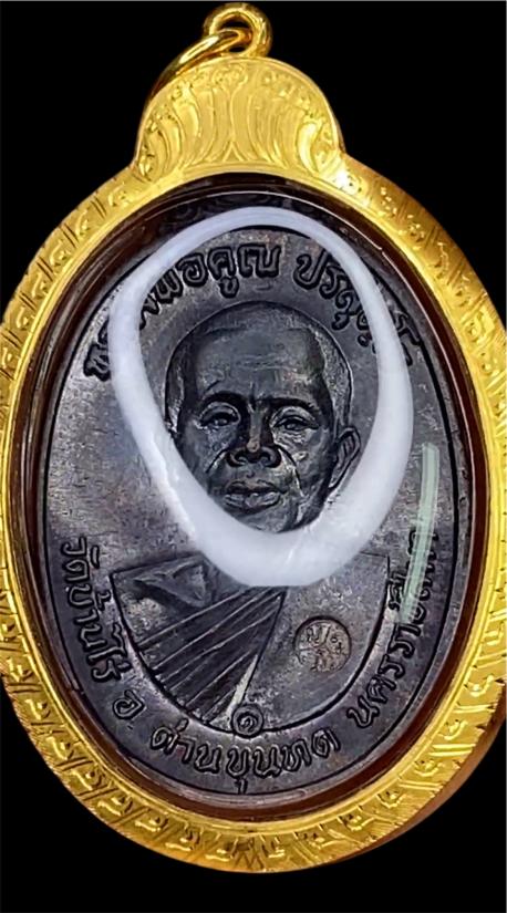 เหรียญหลวงพ่อคูณ วัดบ้านไร่ ปี 2517 บล็อคอมหมาก แก้มขีด เลี่ยมทอง สภาพสวย