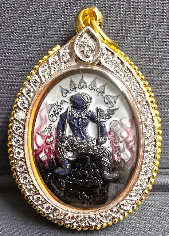 เนื้อเนื้อชนวนมวลสาร มหาปราบ ลงยาดำขาว ลายไฟ หนุมานกายม่วงเรืองแสง