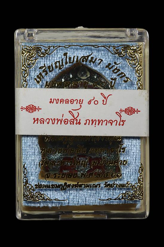 เหรียญใบเสมามังกร มงคลอายุ 90 ปี หลวงพ่อสิน เนื้อนวะลงยา พร้อมกล่องเดิม แดง 100 no.6 องค์สุดท้าย |