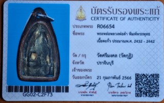 พระหลวงพ่อดำ พิมพ์พระพุทธ เนื้อตะกั่วฝังเขี้ยวหมาป่า วัดกุฎี ปี2432-2442 จ.ปราจีนบุรี พร้อมบัตรสมาคมพระเครื่อง |