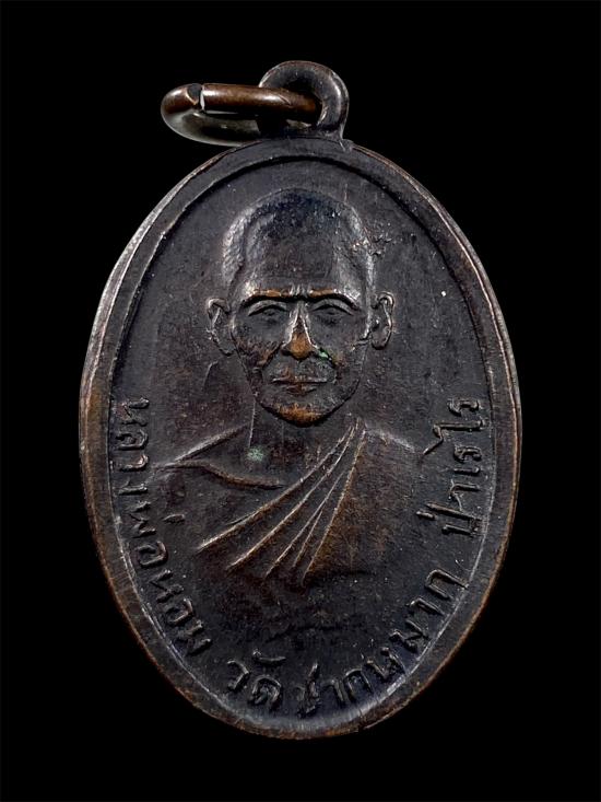 เหรียญรุ่นแรกหลวงพ่อหอม วัดชากหมาก จ.ระยอง บล็อคเสริม เนื้อทองแดงรมดำ |