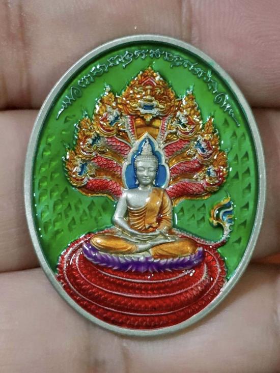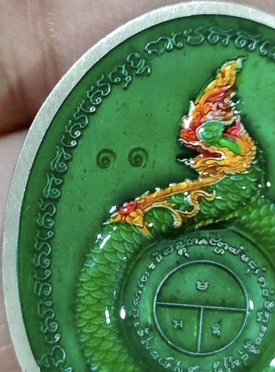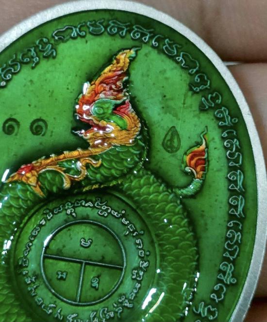 เหรียญปรกโพธิ์พญานาค หลวงปู่อิ่ม วัดทุ่งนาใหม่ จ.นครศรีธรรมาราช เนื้ออัลปาก้าซาตินลงยาเขียวลงยาพญานาค ลงยาจีวร หลังลงยาเขียว ลงยาพญานาค ตอก โค๊ตเม็ดงา ตอกหมายเลข 11 |