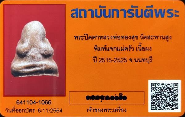 พระปิดตาหลวงพ่อทองสุข วัดสะพานสูง พิมพ์แจกแม่ครัว เนื้อผง ปี 2515-2525 จ.นนทบุรี พร้อมบัตรG... |