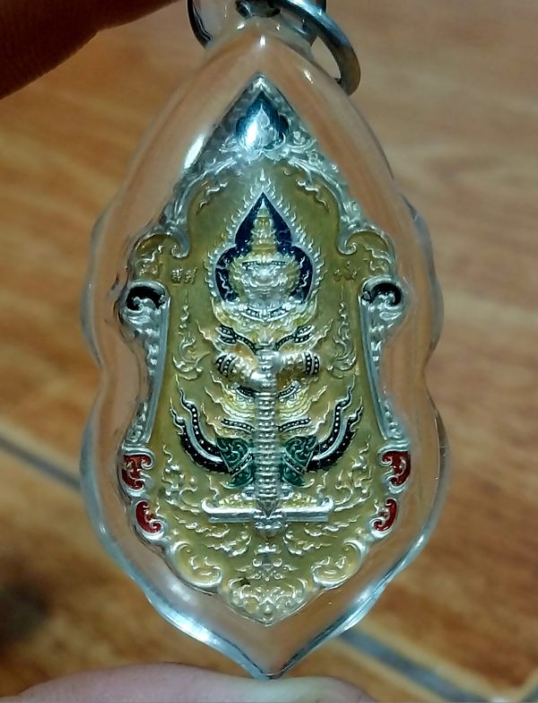 เหรียญ ท้าวเวสสุวรรณ รุ่นเมตตาบารมี เนื้อเงิน ลงยาเหลือง หลังยาน้ำเงิน เลขมงคลเลข 8 พระสวยเลขสวย |
