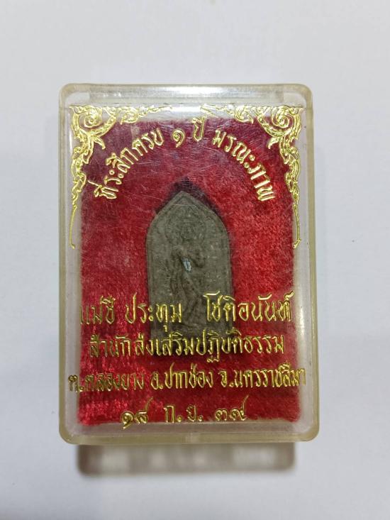 พระพุทธปางลีลา หลังพระสีวลี ฝังแร่โคตรเศรษฐี แม่ชีประทุม โชติอนันต์ ศิษย์สายหลวงพ่อฤาษีลิงดำ วัดท่าซุง ปี2539 เห็นแร่โคตรเศรษฐีชัดเจน มาพร้อมกล่องเดิม |