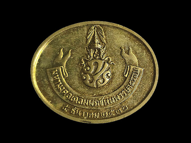 - ด้านหลัง - พระปรมาภิไธยย่อ ภปร.ประดิษฐานไว้ที่ด้านหลังเบื้องบน เบื้องล่างมีข้อความว่ามหามงคลเฉลิมพระชนมพรรษา 5 รอบ และวันเดือนปีที่จัดสร้าง