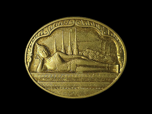 ***เหรียญพระนอน พระพุทธปรางค์ไสยาสน์ หลัง ภปร วัดพระเชตุพลวิมลมังคลาราม (วัดโพธิ์) ที่ระลึก 5 รอบ รัชกาลที่ 9 พ.ศ.2530 ออกแบบและปั้นแบบโดยกรมศิลปากร จัดสร้างโดยกองกษาปณ์ กรมธนารักษ์
