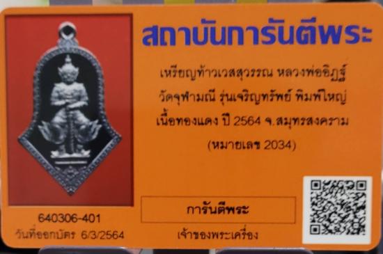 เหรียญท้าวเวสสุวรรณ หลวงพ่ออิฏฐ์ วัดจุฬามณี รุ่นเจริญทรัพย์พิมพ์ใหญ่ เนื้อทองแดง ๒๕๖๓ จ.สมุทรสงคราม (หมายเลข ๒o๓๔ ) |