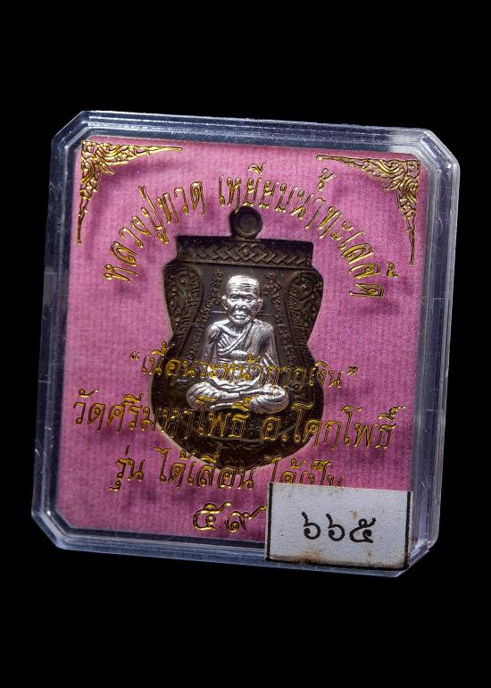 หลวงปู่ทวด หลวงปู่แดง วัดศรีมหาโพธิ์ อ.โคกโพธิ์ รุ่นได้เลื่อนได้เป็น 59 รุ่น2 เนื้อนวะหน้ากากเงิน 1ใน 3,000เหรียญ เลข3หลัก 665 /// สวยเดิมพร้อมกล่อง