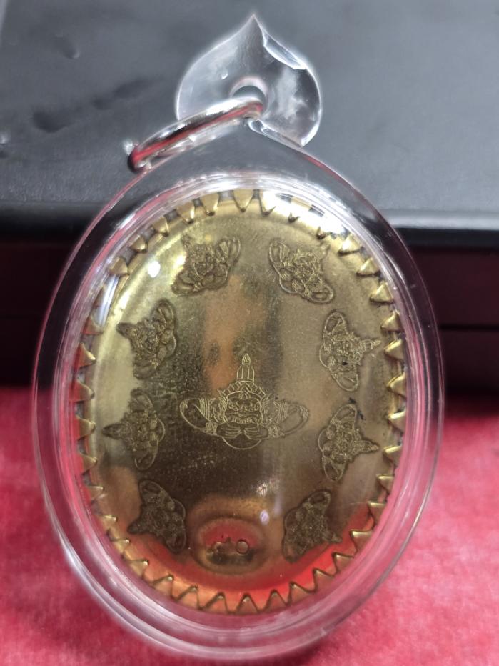 ล็อกเก็ตเหนือดวงฉากทอง หลังทองเหลือง ใส่มวลสาร ตอกราหู รอบ เลข40 (วัดสร้าง) พร้อมเลี่ยมพลาสติกใสกันน้ำ *พระไม่มีกล่อง |
