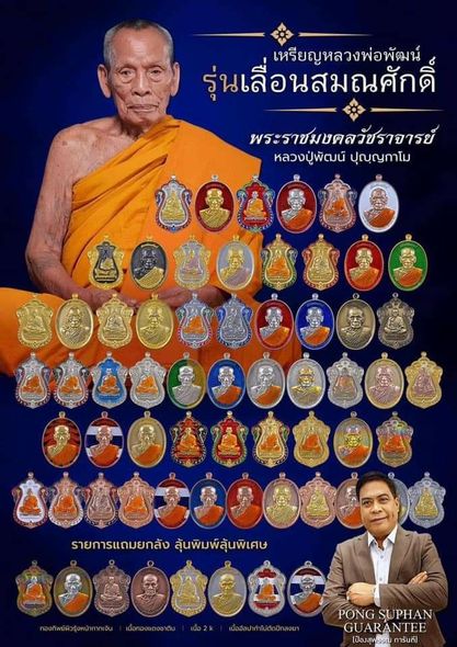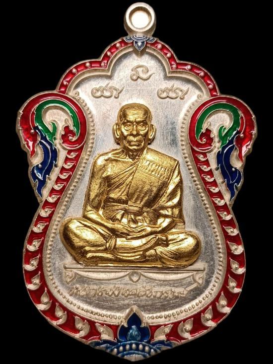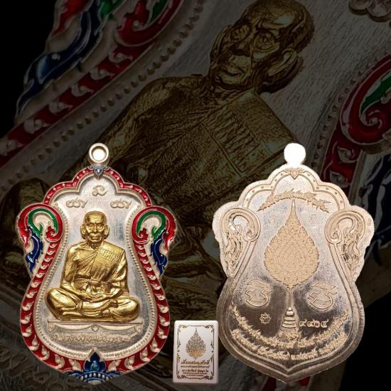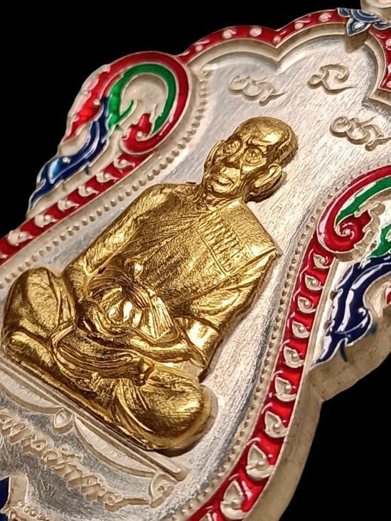 เหรียญเสมา เหรียญหลวงพ่อพัฒน์ วัดห้วยด้วน รุ่นเลื่อนสมณศักดิ์ ปี 2564 เนื้อเงิน ลงยา หน้ากากทองคำ No.9904